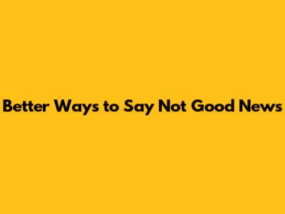 Better Ways To Say Not Good News