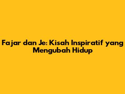Fajar Dan Je: Mengungkap Cerita Inspiratif
