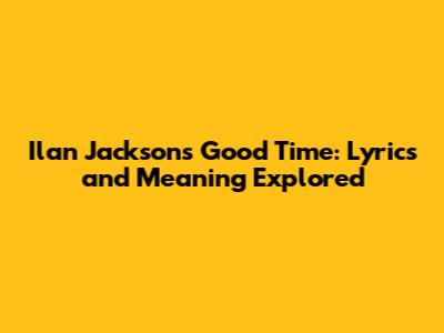 Ilan Jackson's Good Time: Lyrics And Meaning Explored