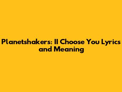 Planetshakers: II Choose You Lyrics And Meaning